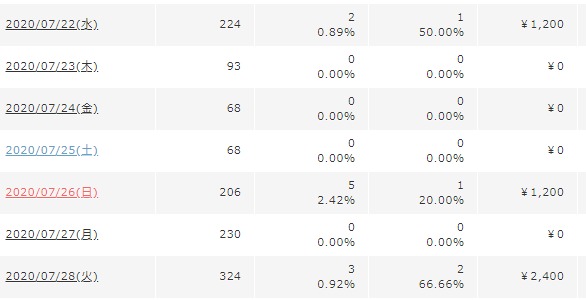 一週間で4800円の報酬が発生しています。